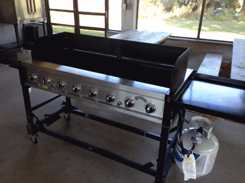 We also have have a large event grill if you prefer not messing with charcoal. Also $25.00 for the weekend delivered to your site. (requires 2 tanks of propane not included)