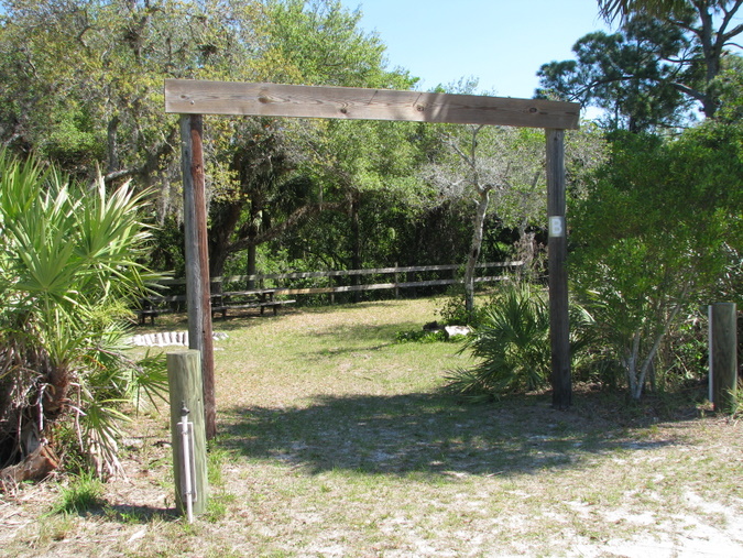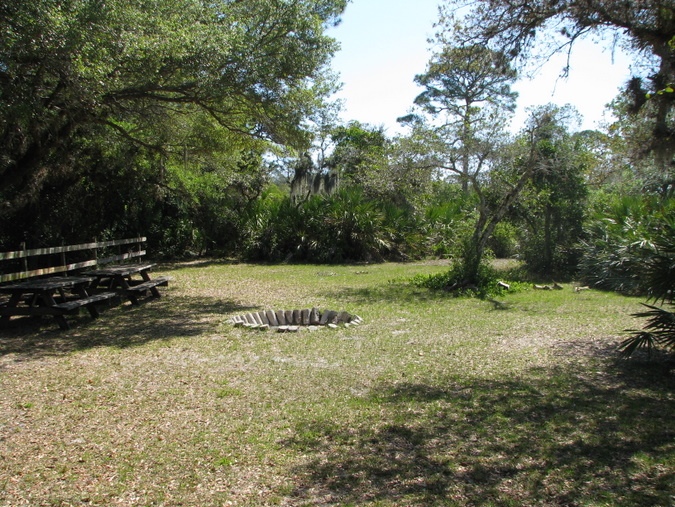 Site B. Includes water, a fire pit and is approx. 85’x 50′ in size and has 2 picnic tables